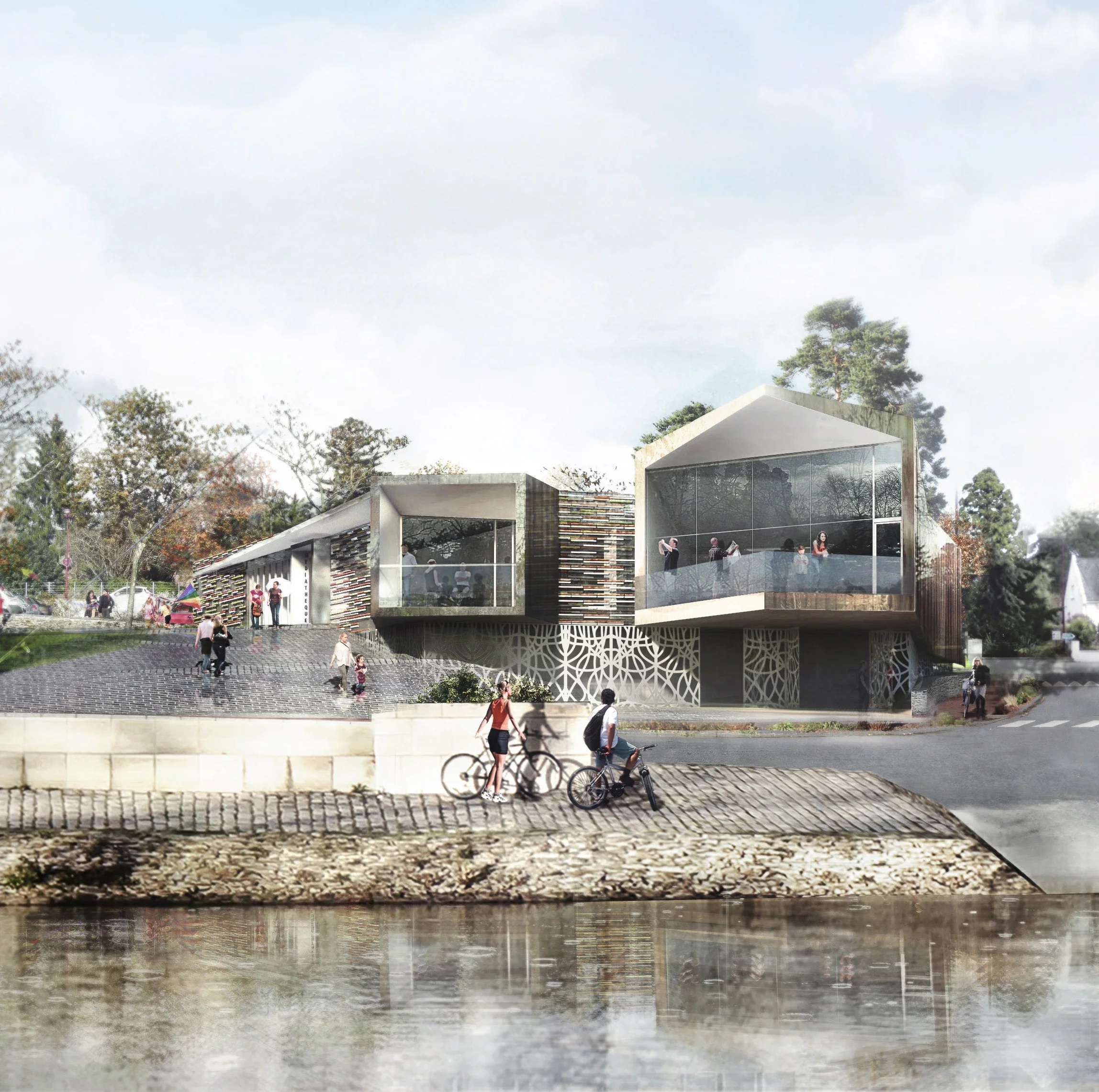 PERSPECTIVE DE LA MEDIATHÈQUE DEPUIS LA RIVIÈRE